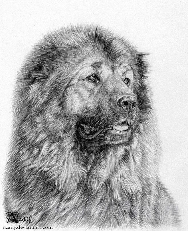 Кавказская овчарка карандашом