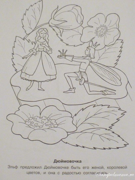 Ганс христиан Андерсен Дюймовочка раскраски