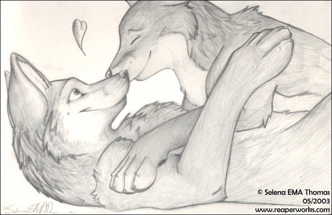 ![Влюбленные волки карандашом]()