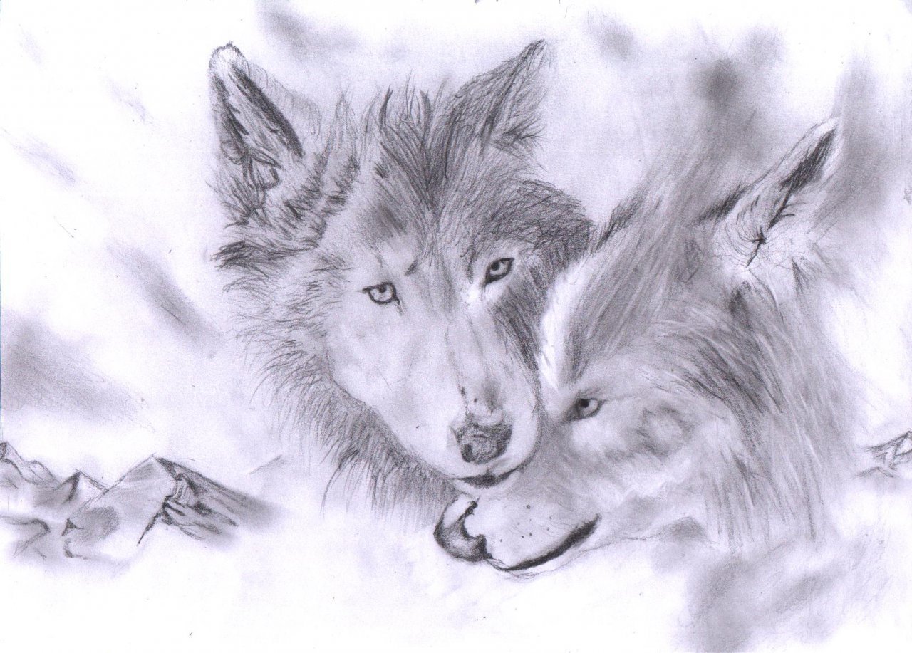 Влюбленные волки карандашом