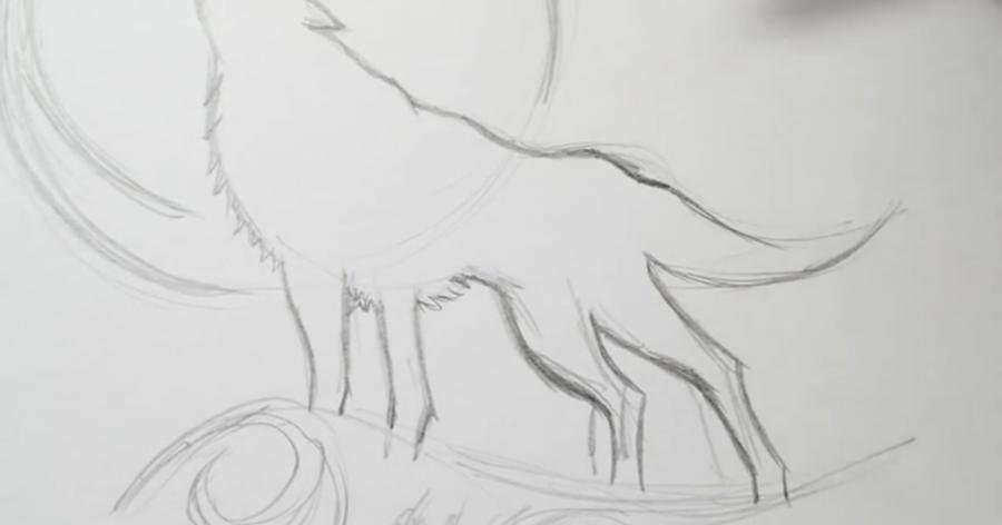Воющий волк для срисовки
