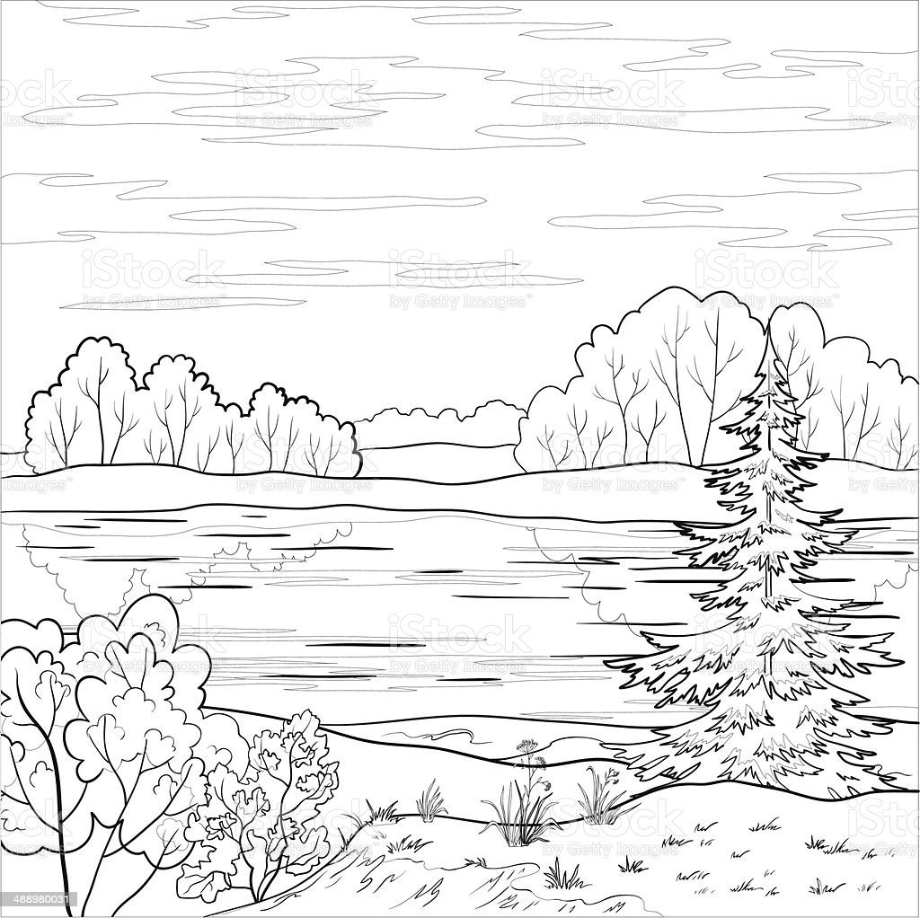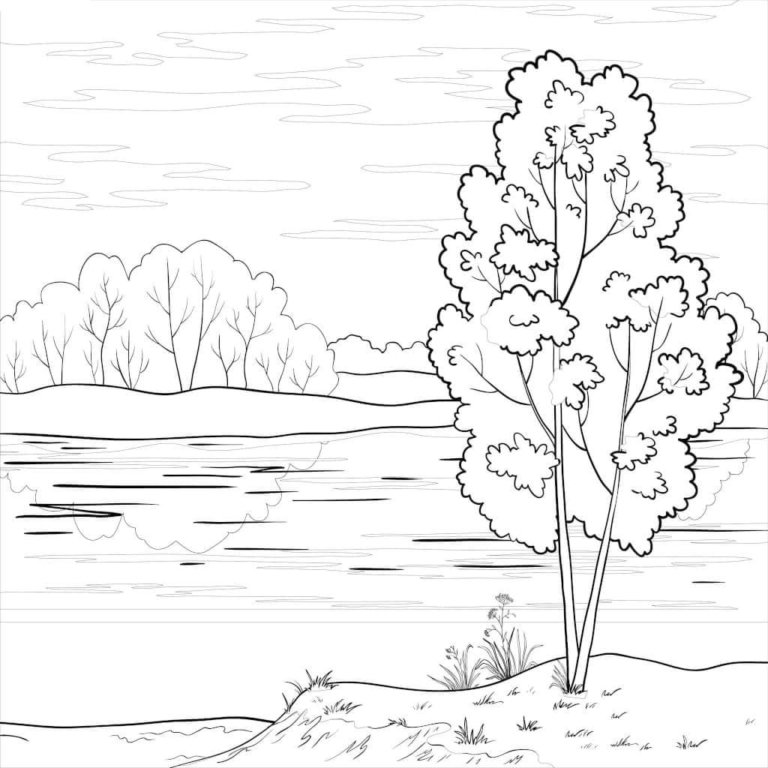 ![Раскраска Речной пейзаж]()