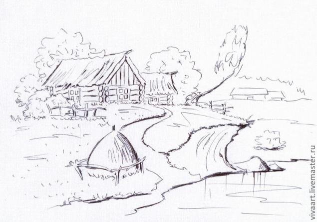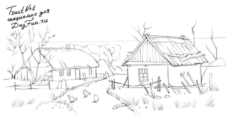 Деревенский пейзаж карандашом для начинающих