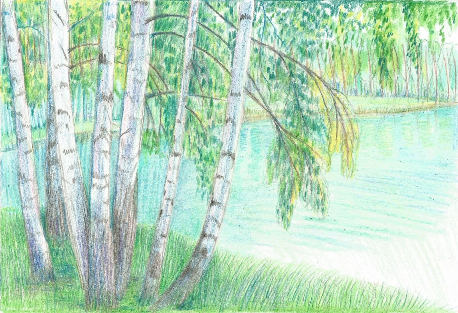 ![Русская природа цветными карандашами]()