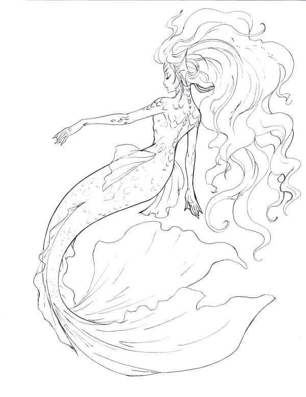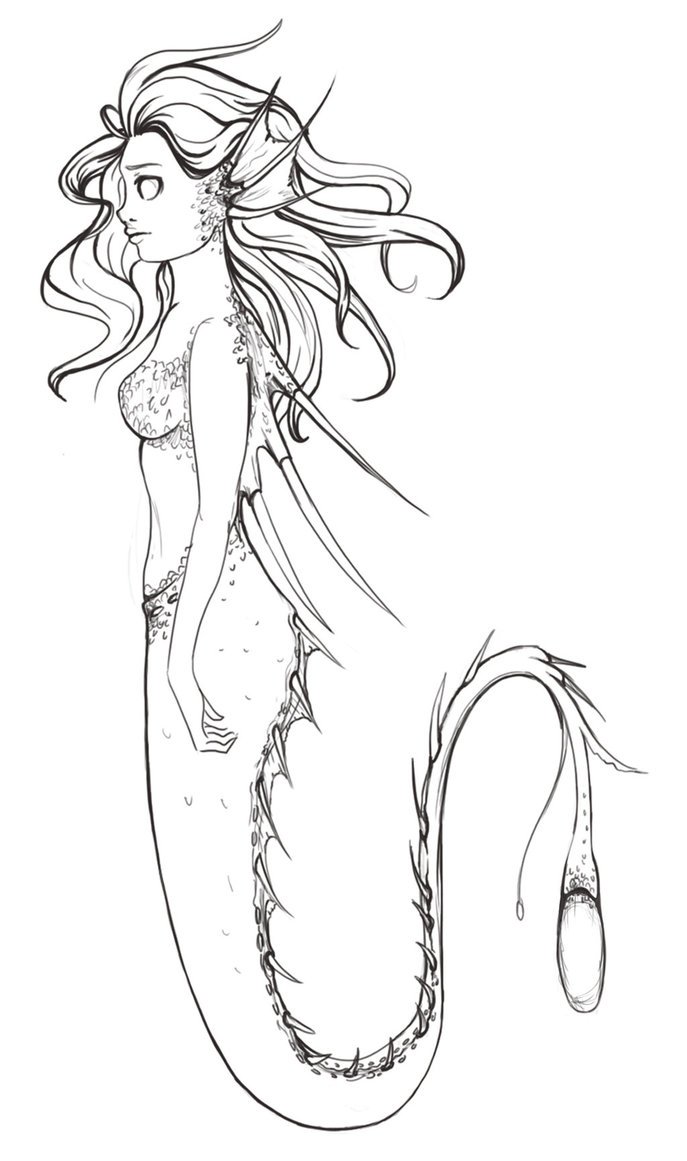 Эскиз русалки для рисования