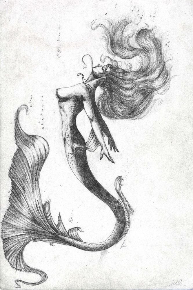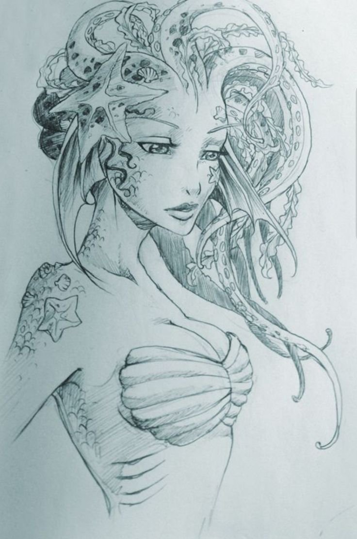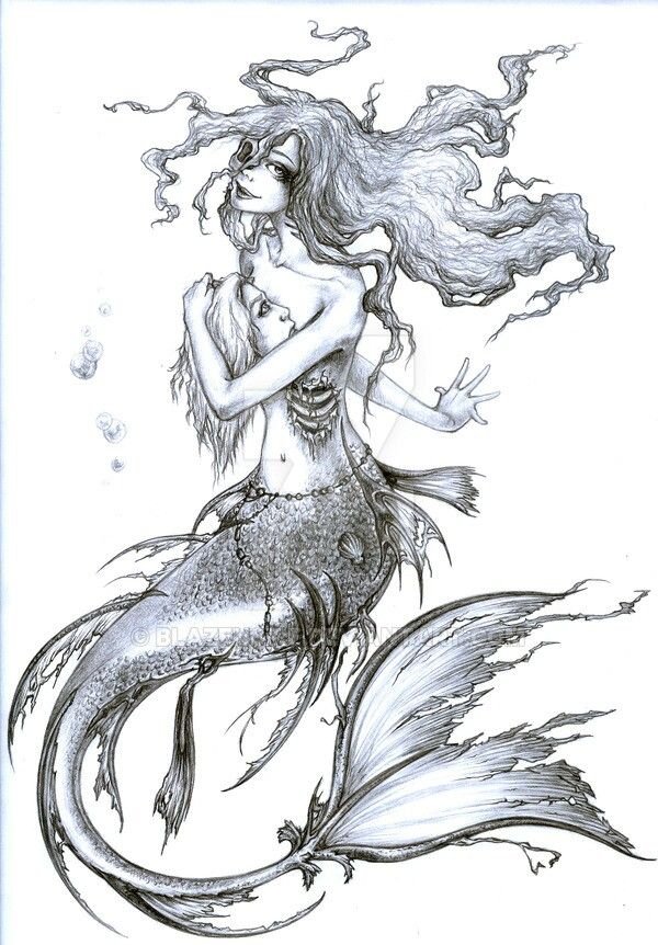 ![Скетчи мифических русалок]()