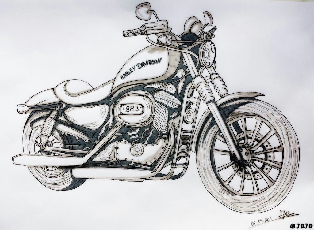 ![Мотоцикл Харлей Дэвидсон нарисовать]()