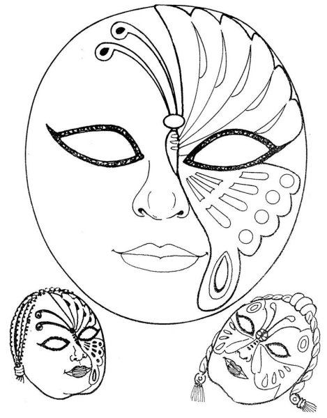 ![Венецианская маска раскраска]()
