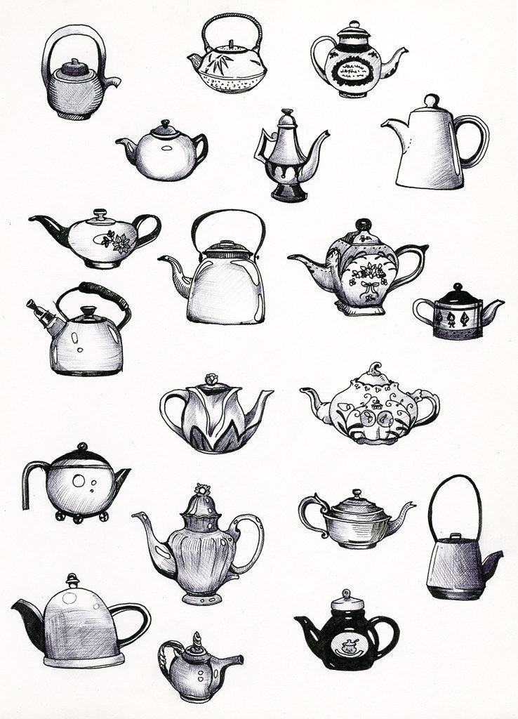 ![Чайник эскиз черно белый]()