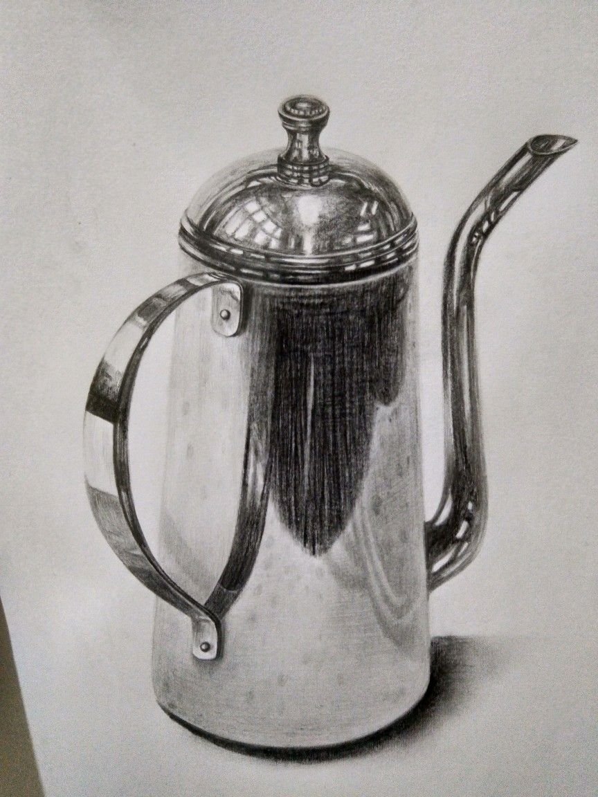 ![Металлический чайник карандашом]()