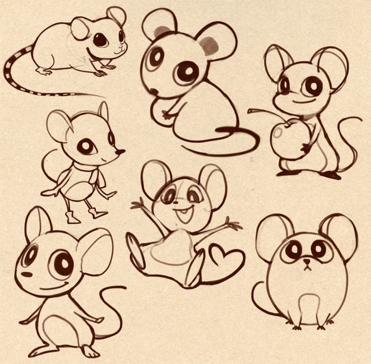 ![Скетчи мультяшных мышек]()
