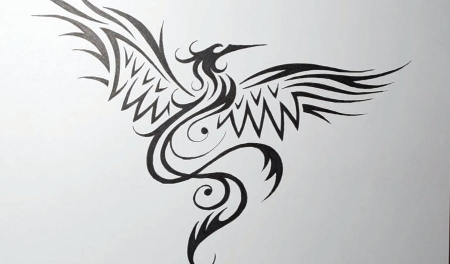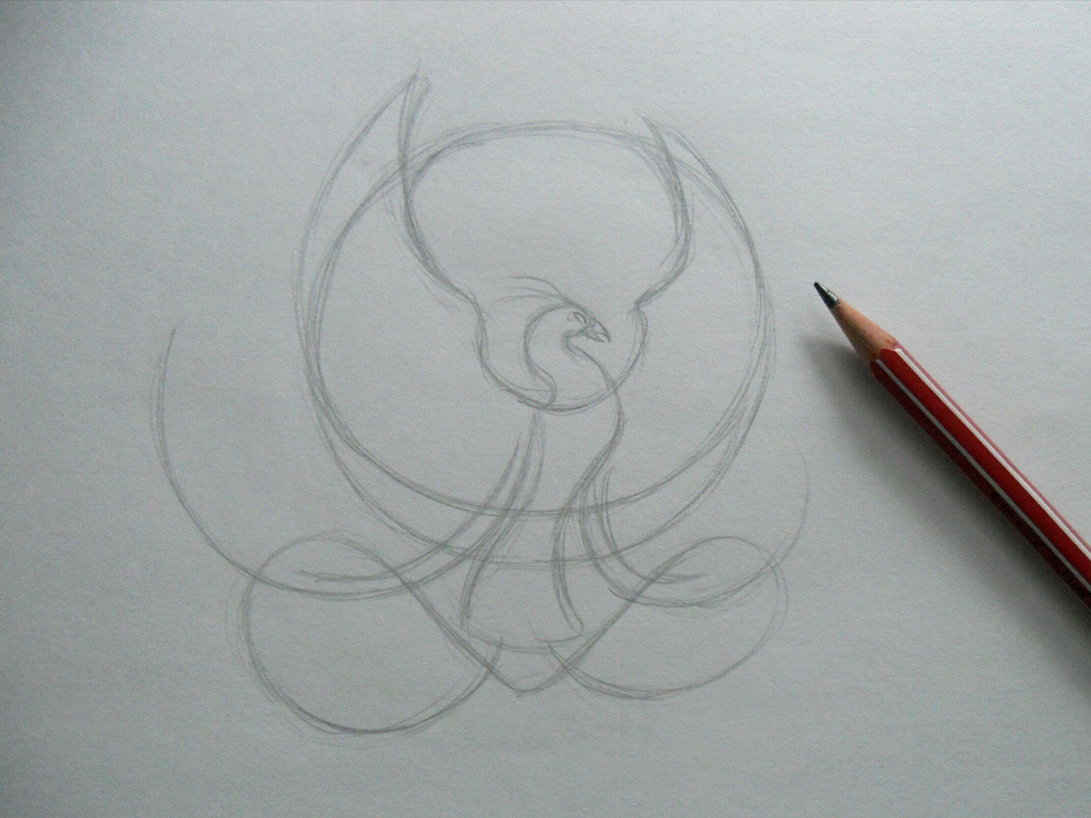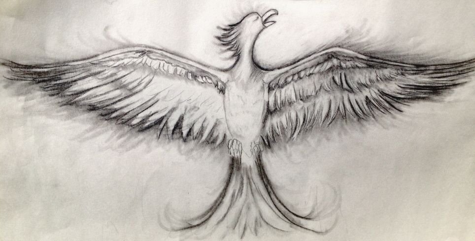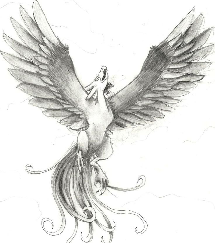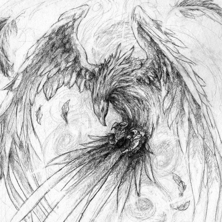Феникс - это мифическая птица, символ вечности и возрождения. В данном рисунке, выполненном карандашом, изображен простой, но одновременно выразительный образ феникса. Его грациозное тело и крылья сделаны с учетом каждой детали, создавая ощущение движения и легкости. Оттенки серого и черного карандаша добавляют глубины и реалистичности перьям птицы, а яркий оранжевый цвет на шейке и хвосте подчеркивает ее связь с огнем и восхождением из пепла. Этот простой рисунок карандашом передает силу и мощь феникса, а также его безграничную красоту.