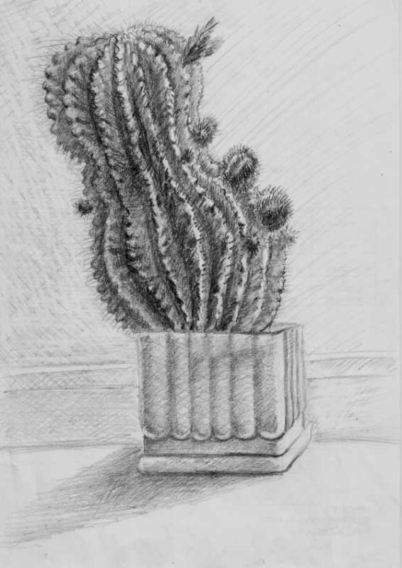![Кактус простым карандашом]()