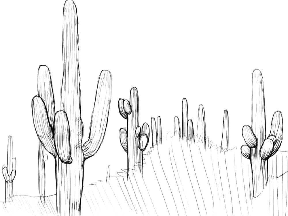 Кактус в пустыне рисунок