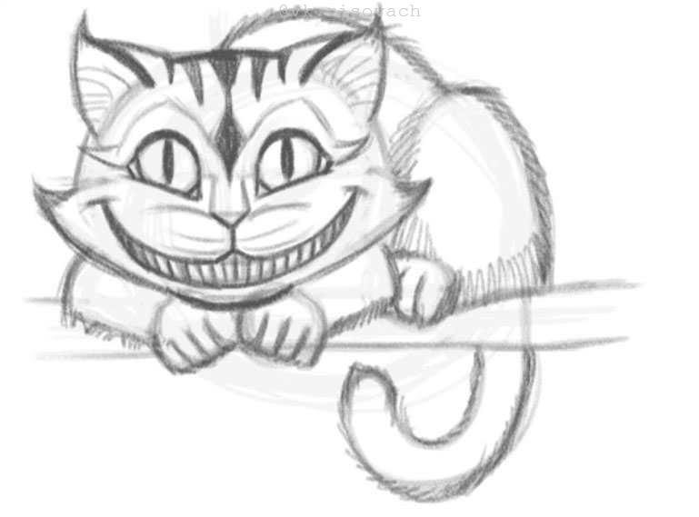 ![Чеширский кот из Алисы в стране чудес карандашом]()