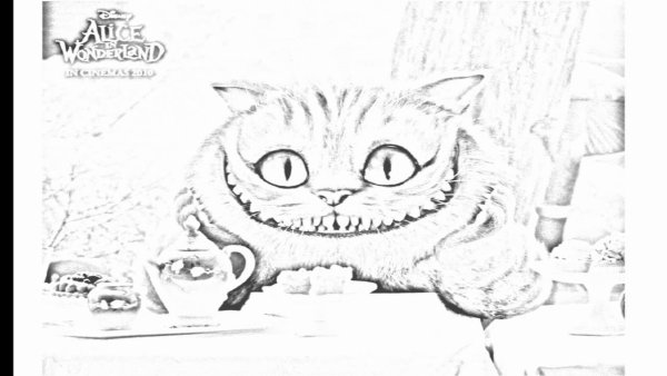 ![Чеширский кот из Алисы в стране чудес черно-белый]()
