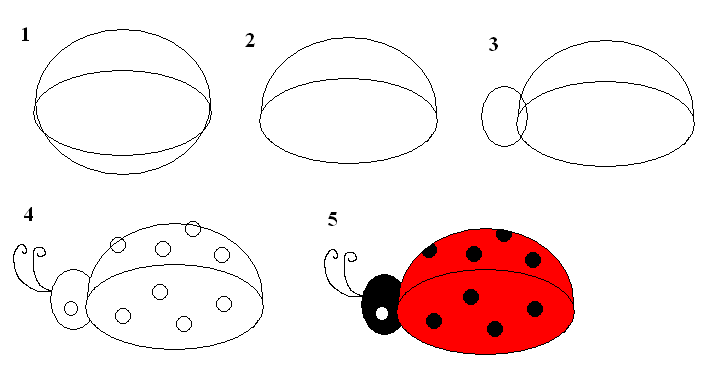 ![Схема рисования Божьей коровки для детей]()