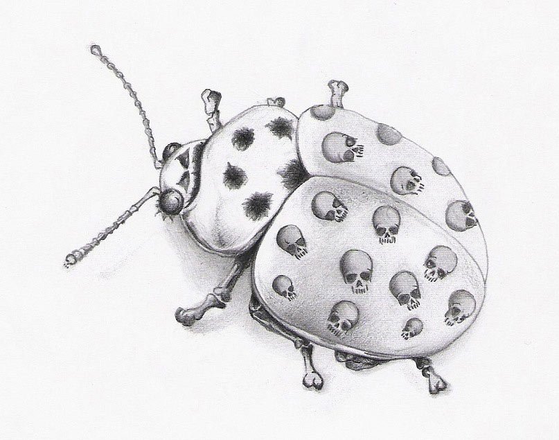 ![Божья коровка рисунок карандашом]()