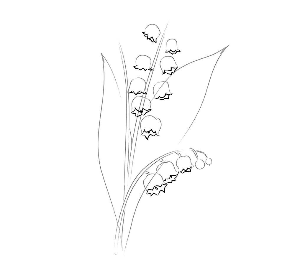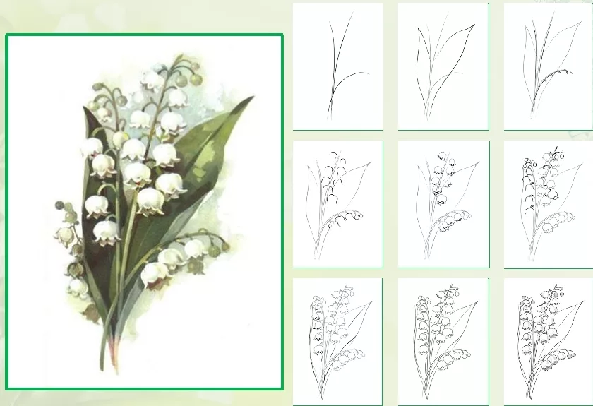 Поэтапный рисунок ландыша
