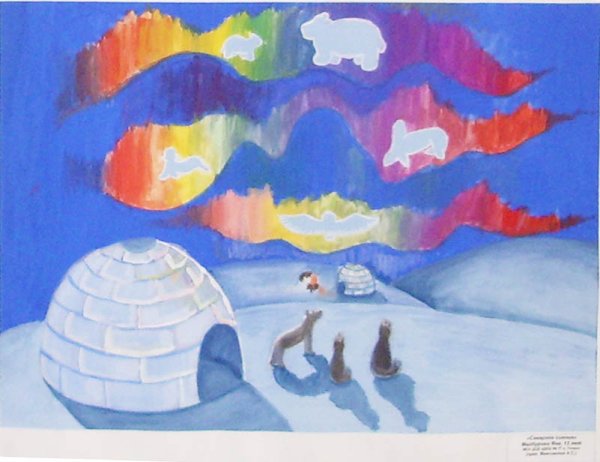Рисование. Тема: «белый медведь и Северное сияние» (Лыкова, 140)