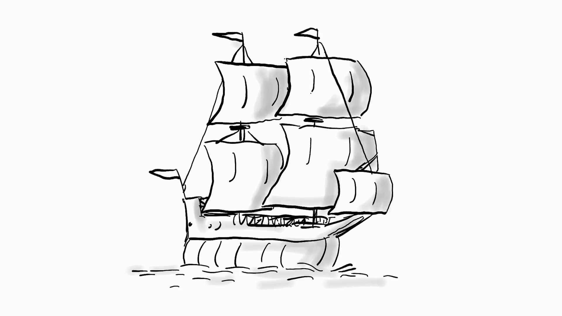 ![Корабль с парусами карандашом]()