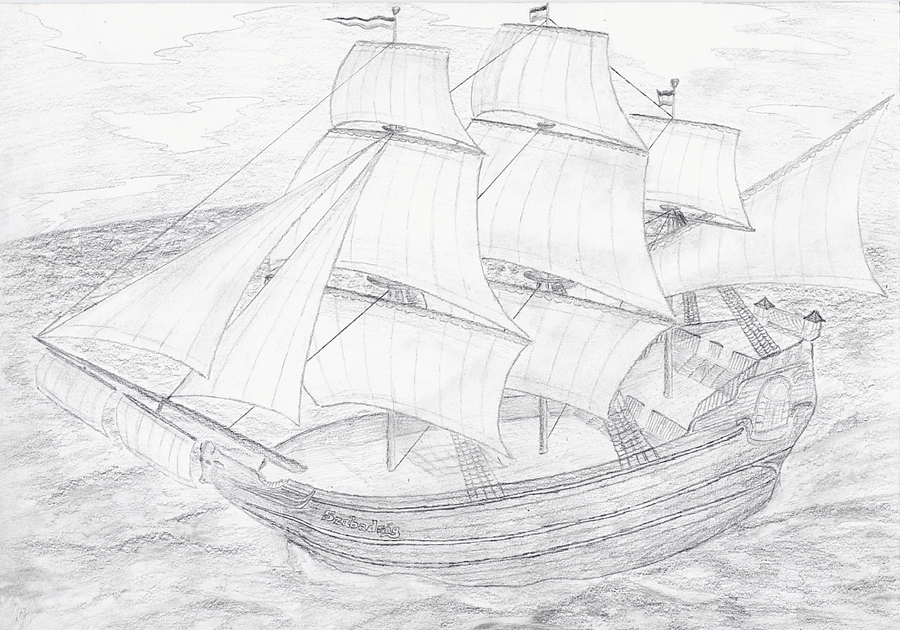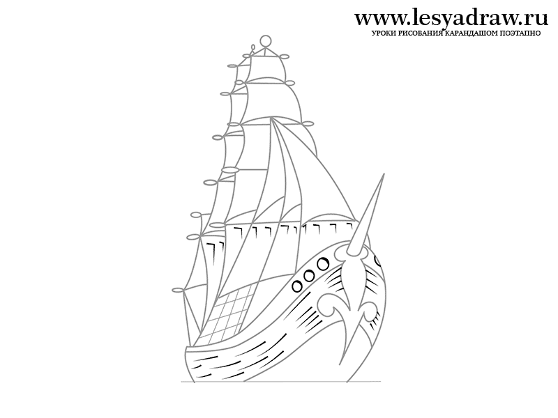 ![Корабль парусный карандашом сбоку]()