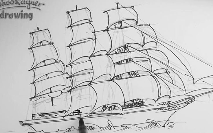 Корабль рисунок карандашом легкий для начинающих