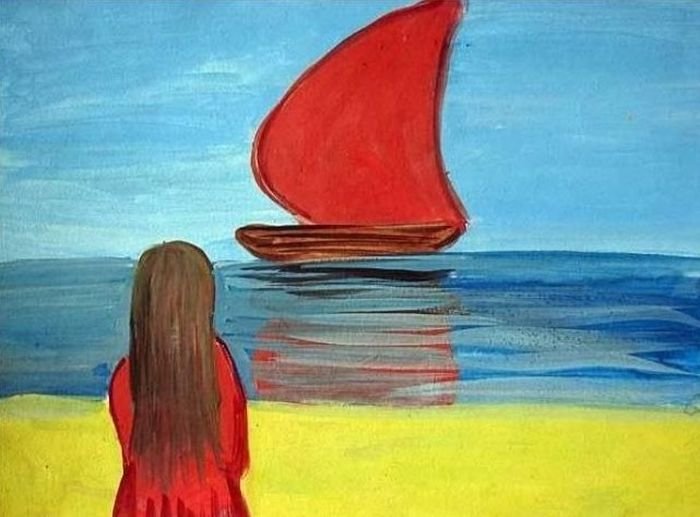 ![Рисунок на тему Алые паруса]()