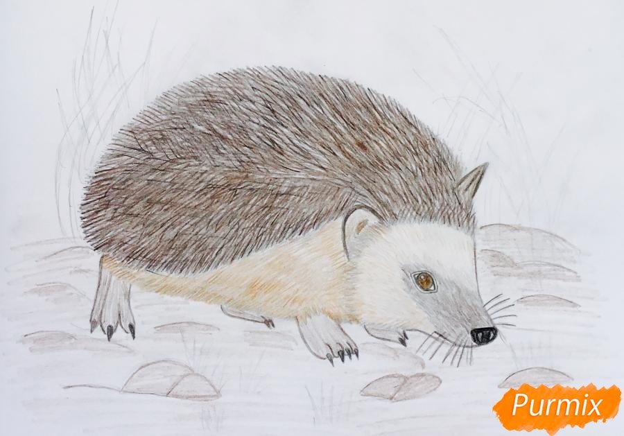 ![Поэтапный рисунок ежа]()