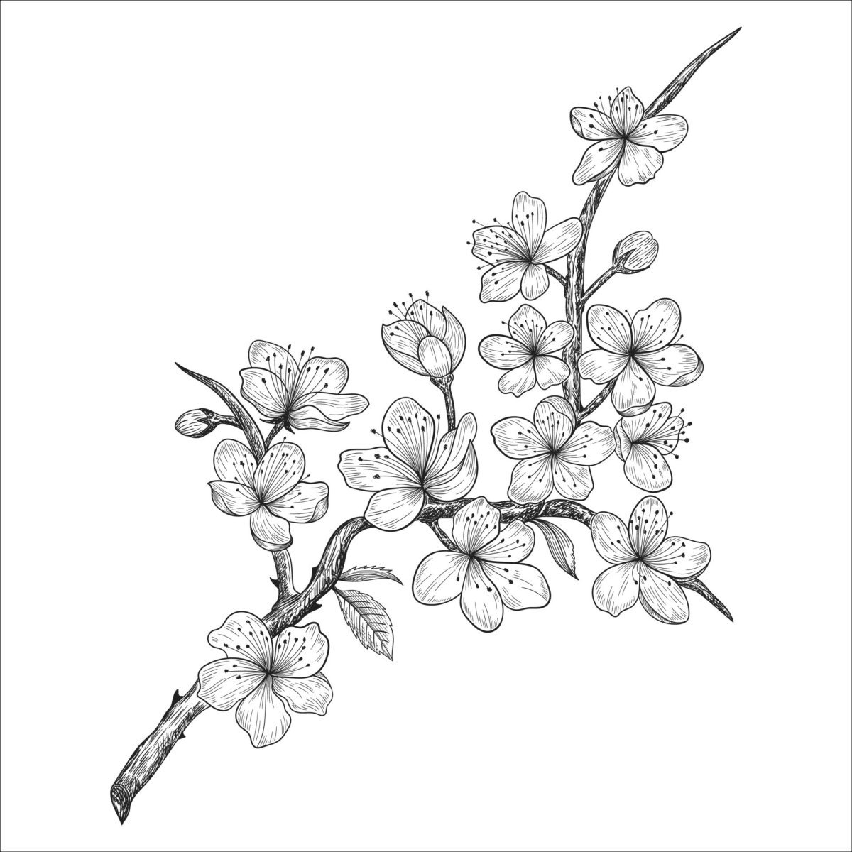 ![Ветка Сакуры черно белая]()