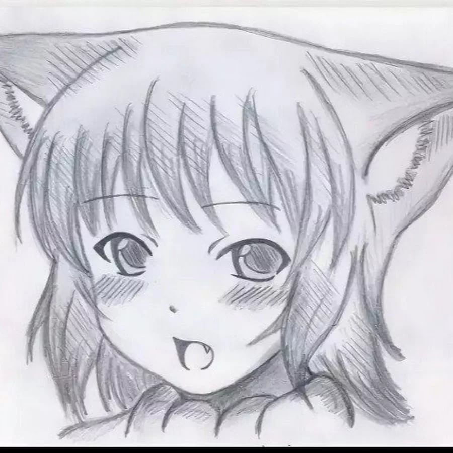 Рисунки карандашом аниме девушек кошек