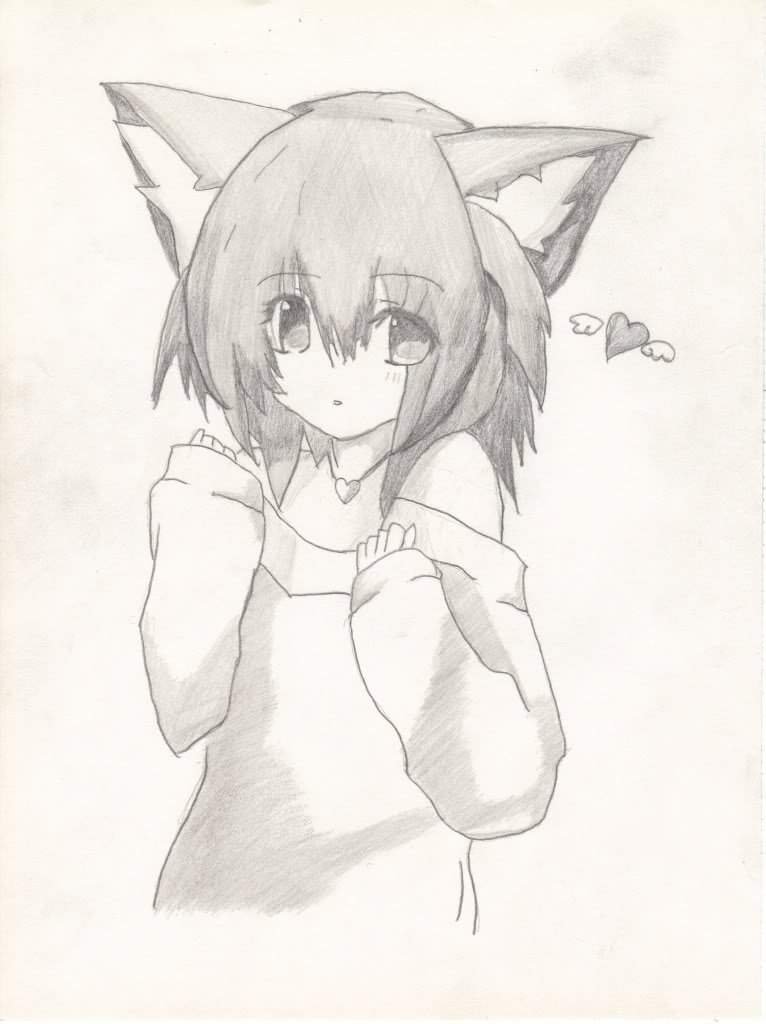 ![Неко карандашом для срисовки]()