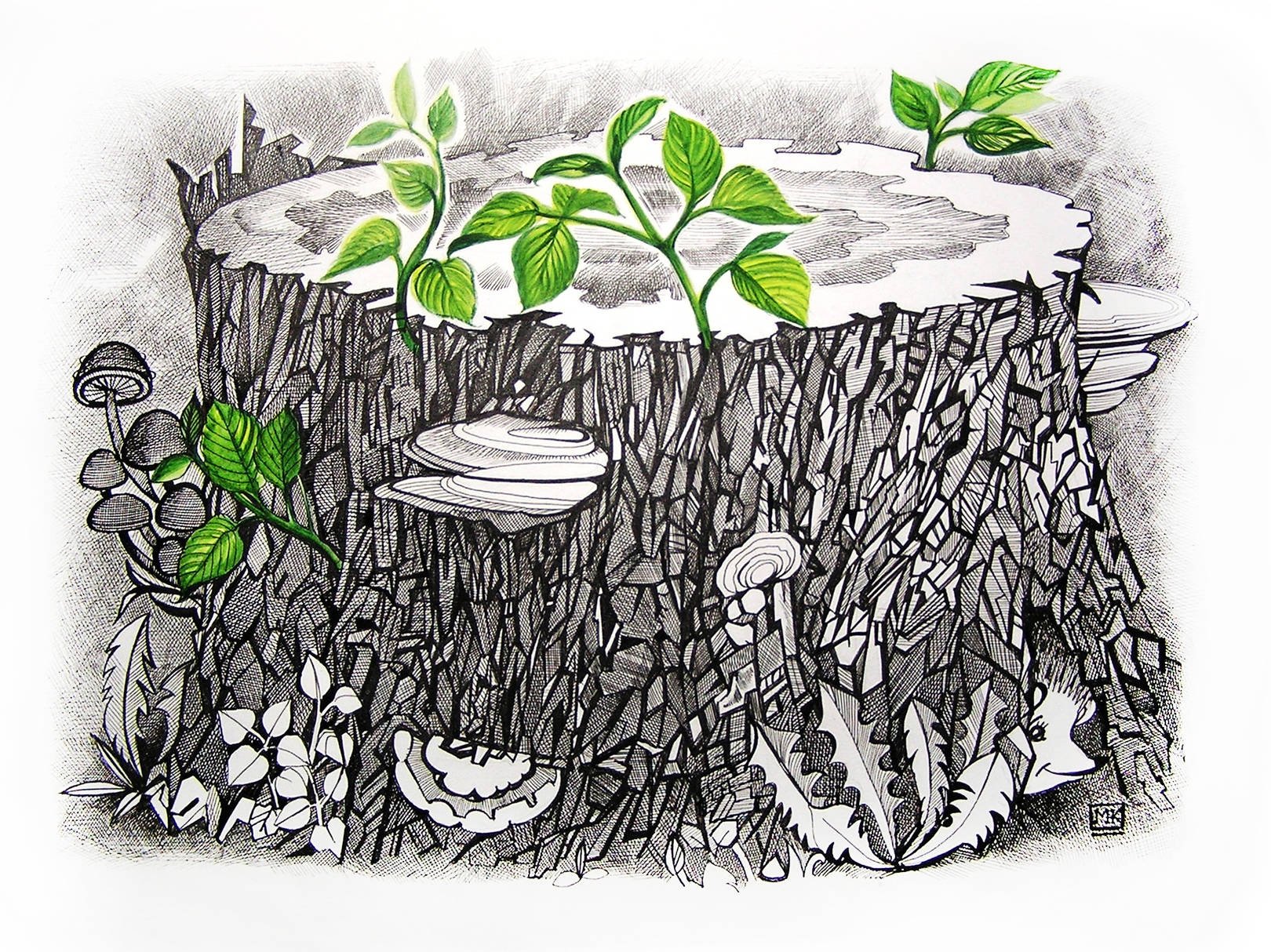 Пень акварелью