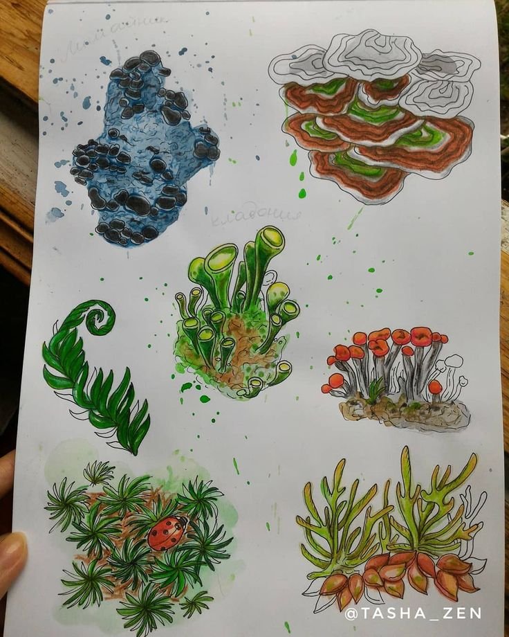 Лишайник рисунок карандашом легкий