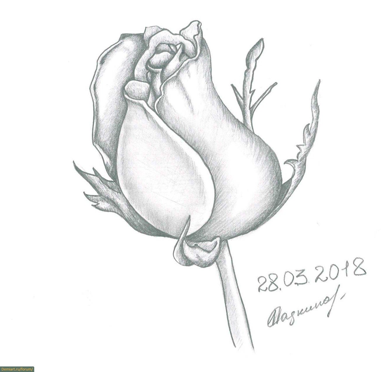 Бутон розы рисунок карандашом