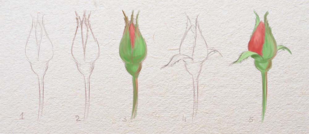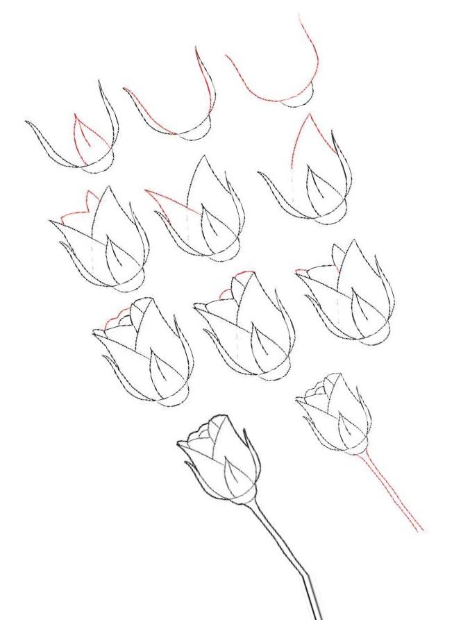 Поэтапное рисование бутона