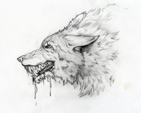 ![Морда волка набросок]()