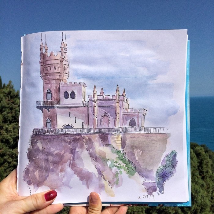 ![Ласточкино гнездо Крым акварель]()
