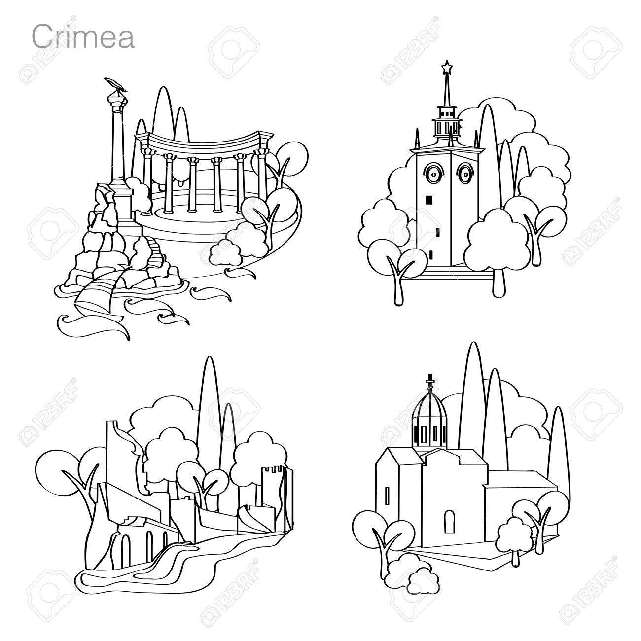![Векторные изображения крымских достопримечательностей]()