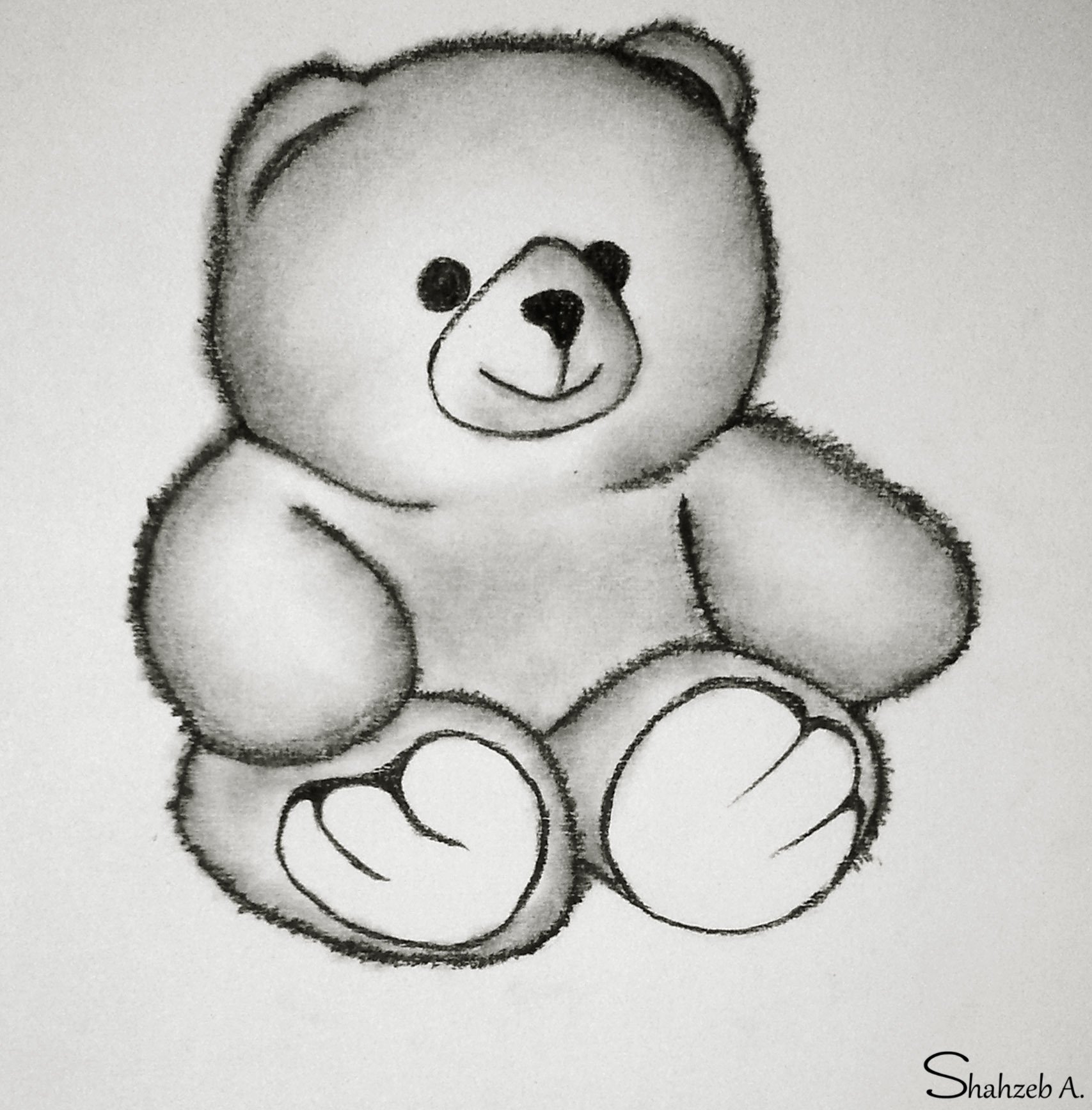 ![Плюшевый мишка с сердечком рисунок карандашом]()