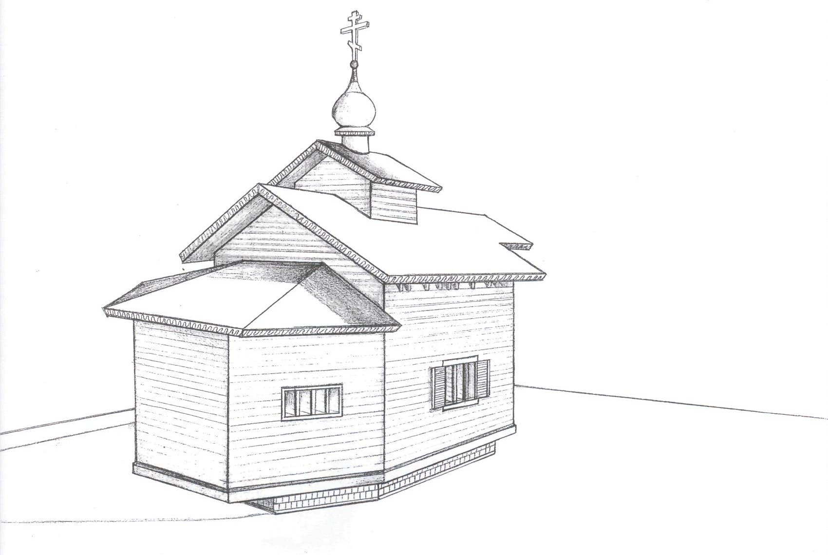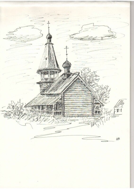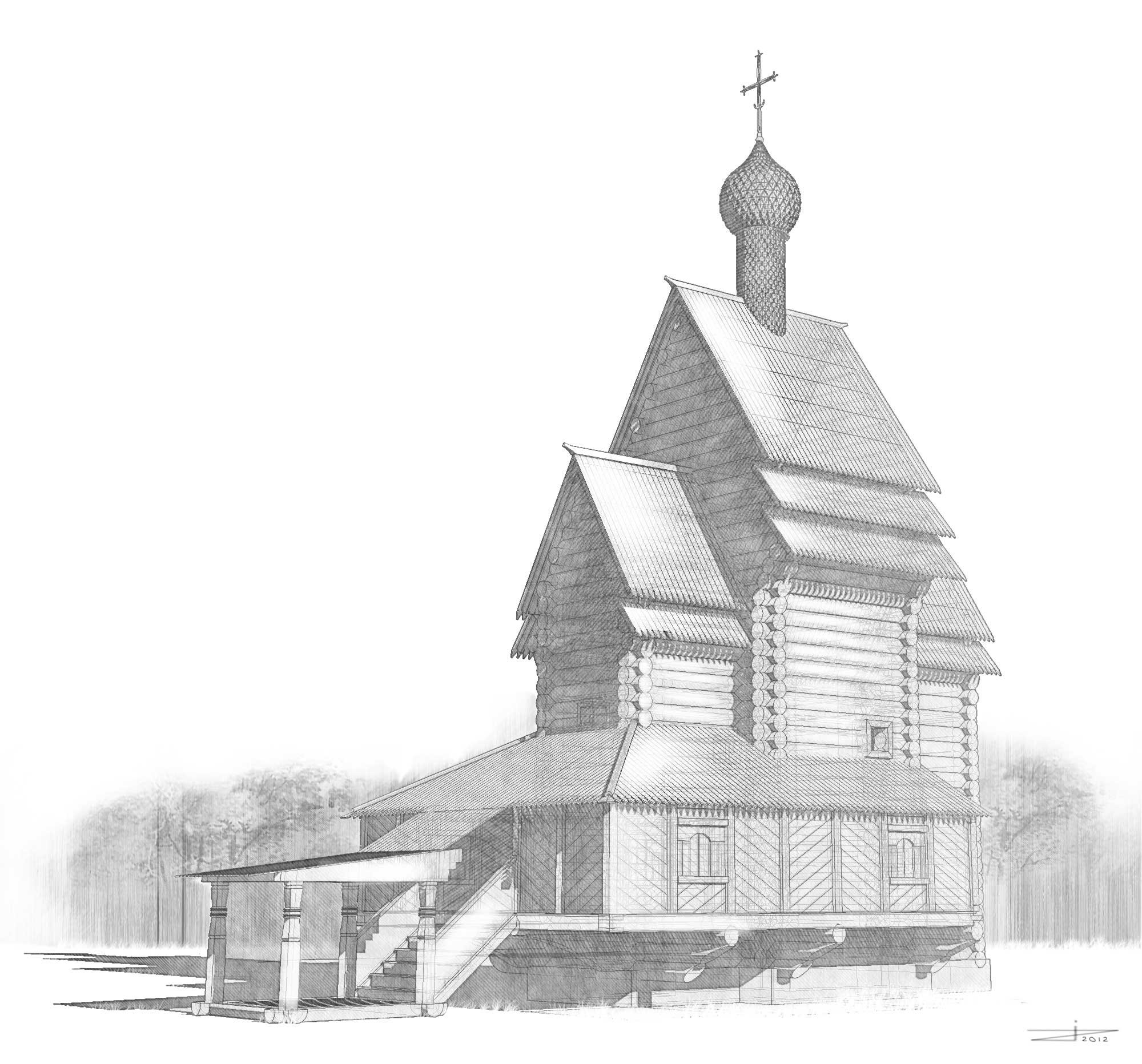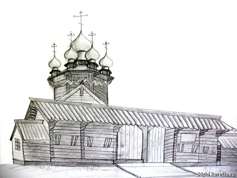 ![Деревянная Церковь карандашом]()
