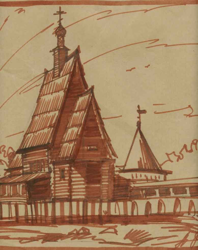 Набросок деревянного храма