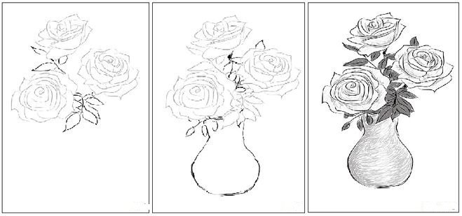 ![Ваза с розами рисунок]()