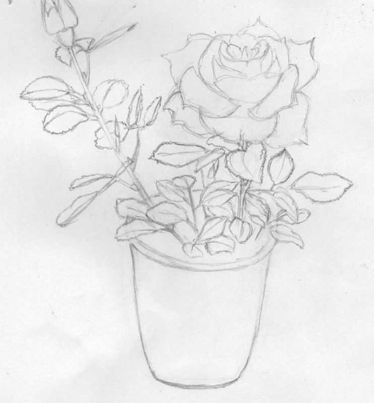 ![Цветы в вазе рисунок карандашом]()