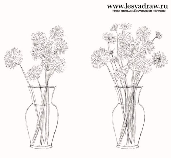 ![Набросок вазы с цветами карандашом]()