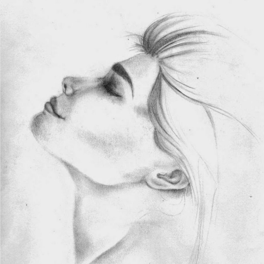 ![Лицо девушки рисунок карандашом]()