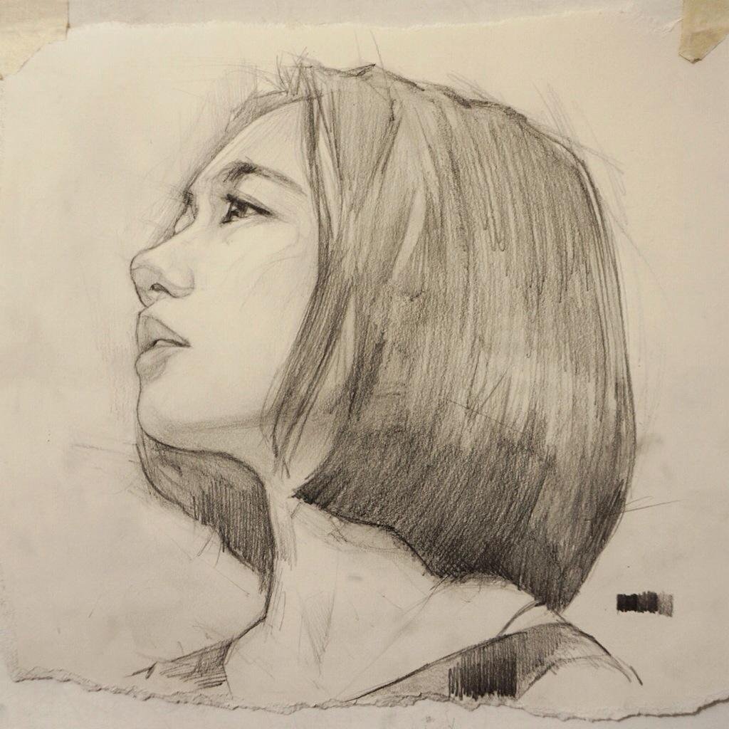 ![Портрет девушки в профиль карандашом]()