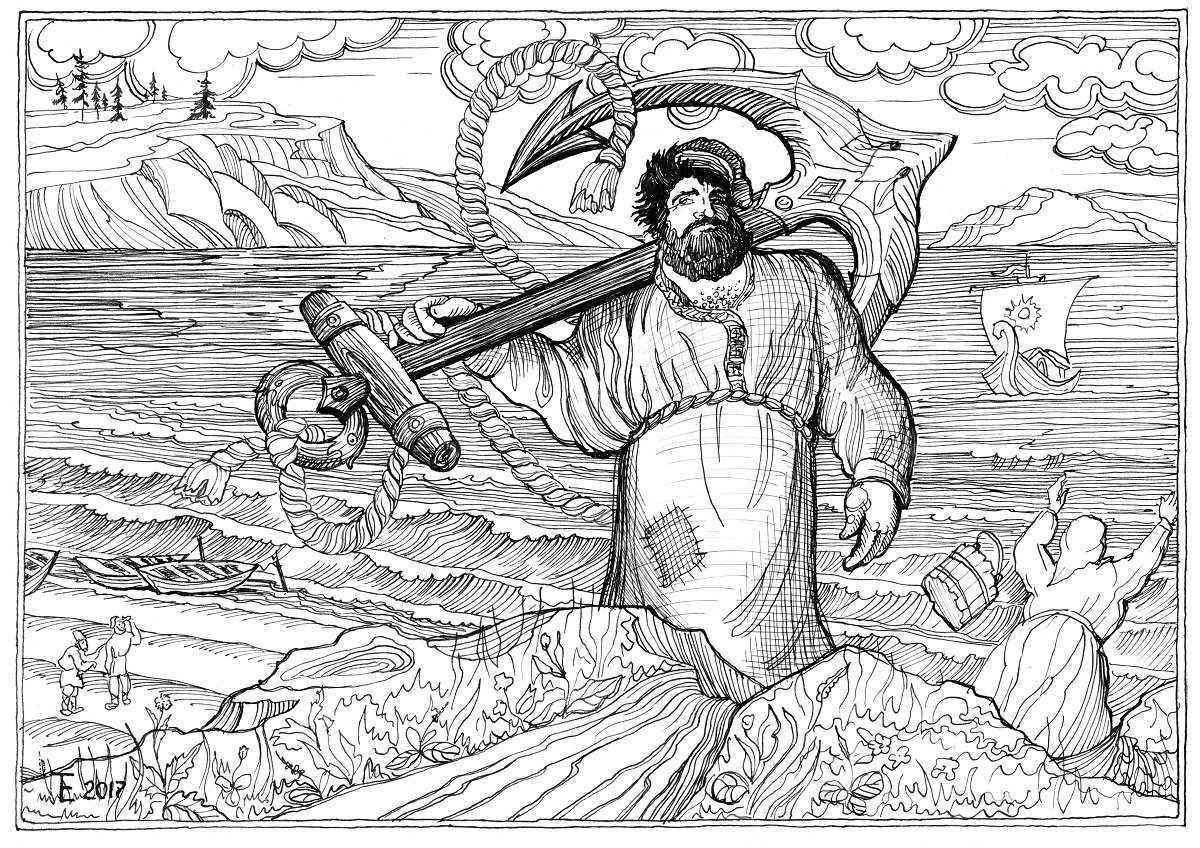 Рисунок к былине Вольга и Микула Селянинович