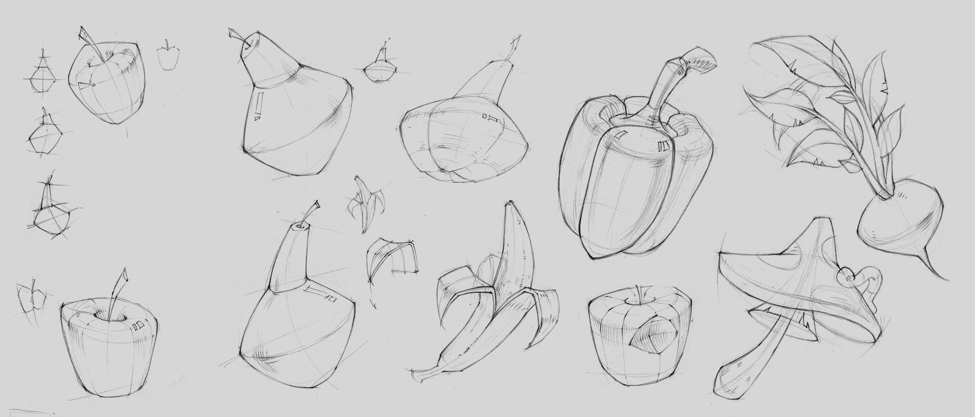 Фрукты для срисовки карандашом