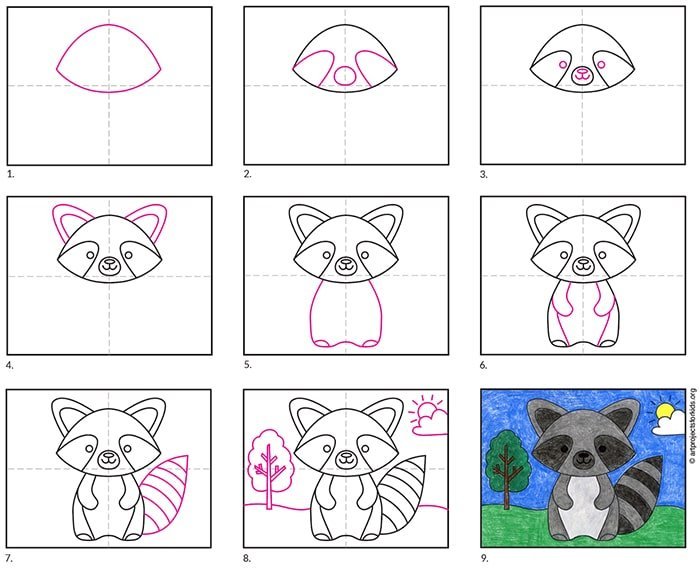![Енот пошаговое рисование]()